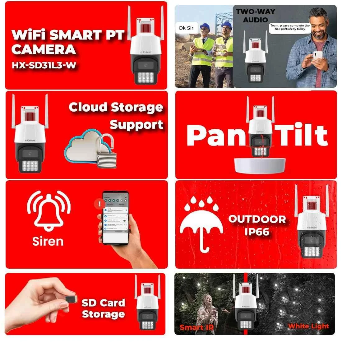 Hixecure HX-SD31L3-W-64GB 3MP PT Outdoor Smart WiFi Camera with Night Vision, Motion Detect, Two-Way Audio, IP66 Weatherproof